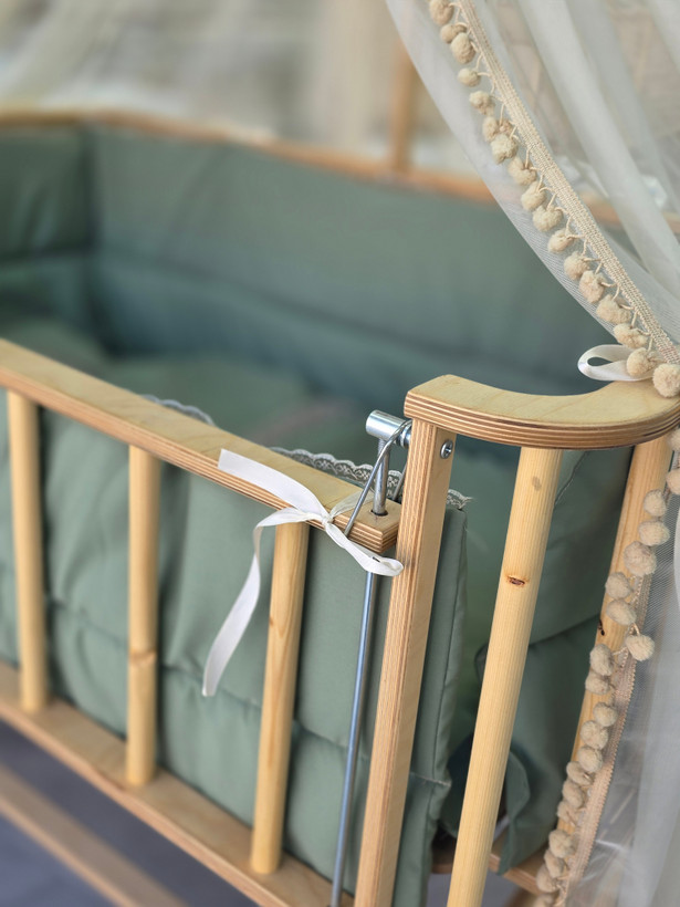 تخت و گهواره‌ کنار مادر چوبی ماتاکیدز مدل رهام (سبز)
