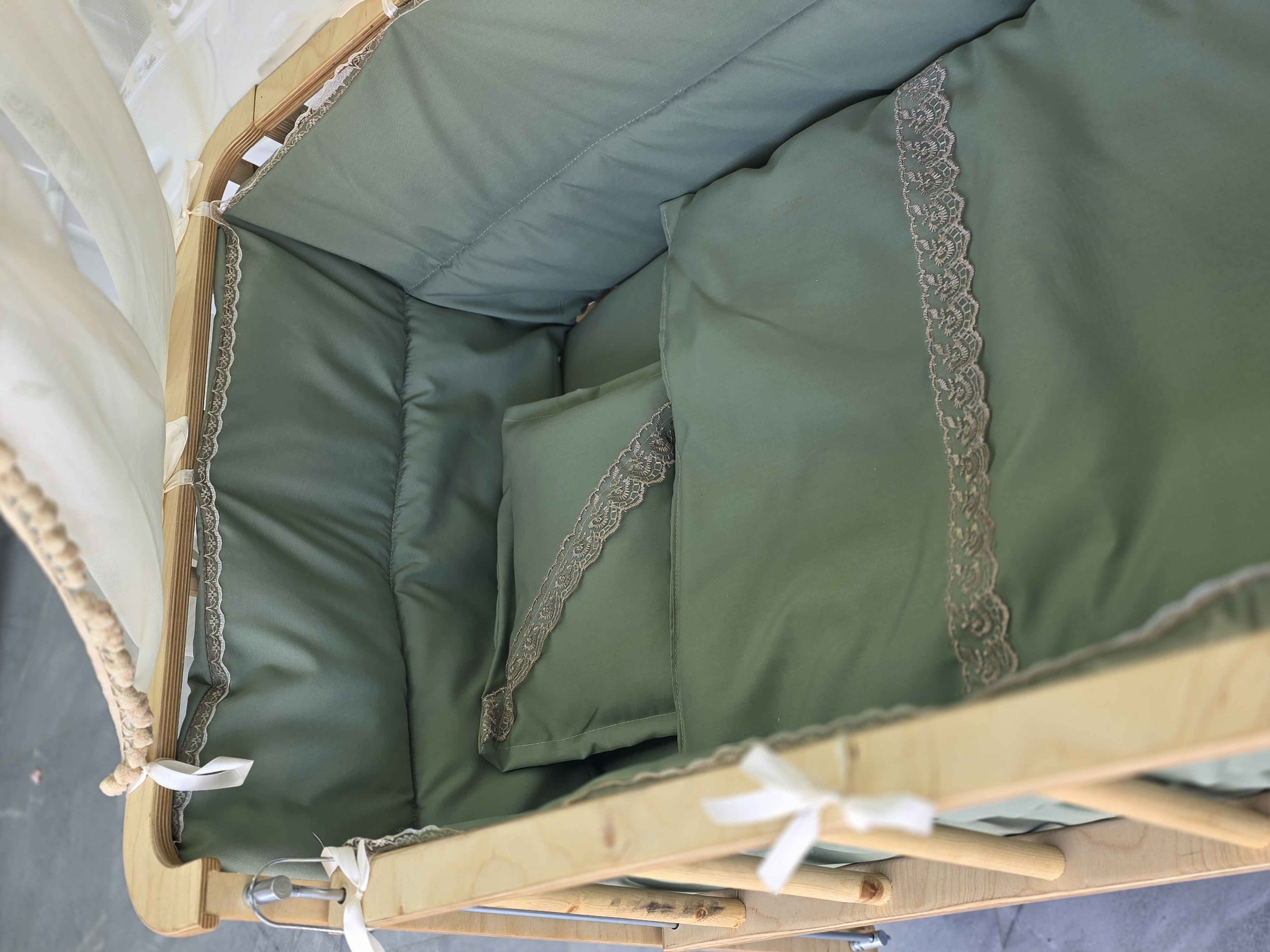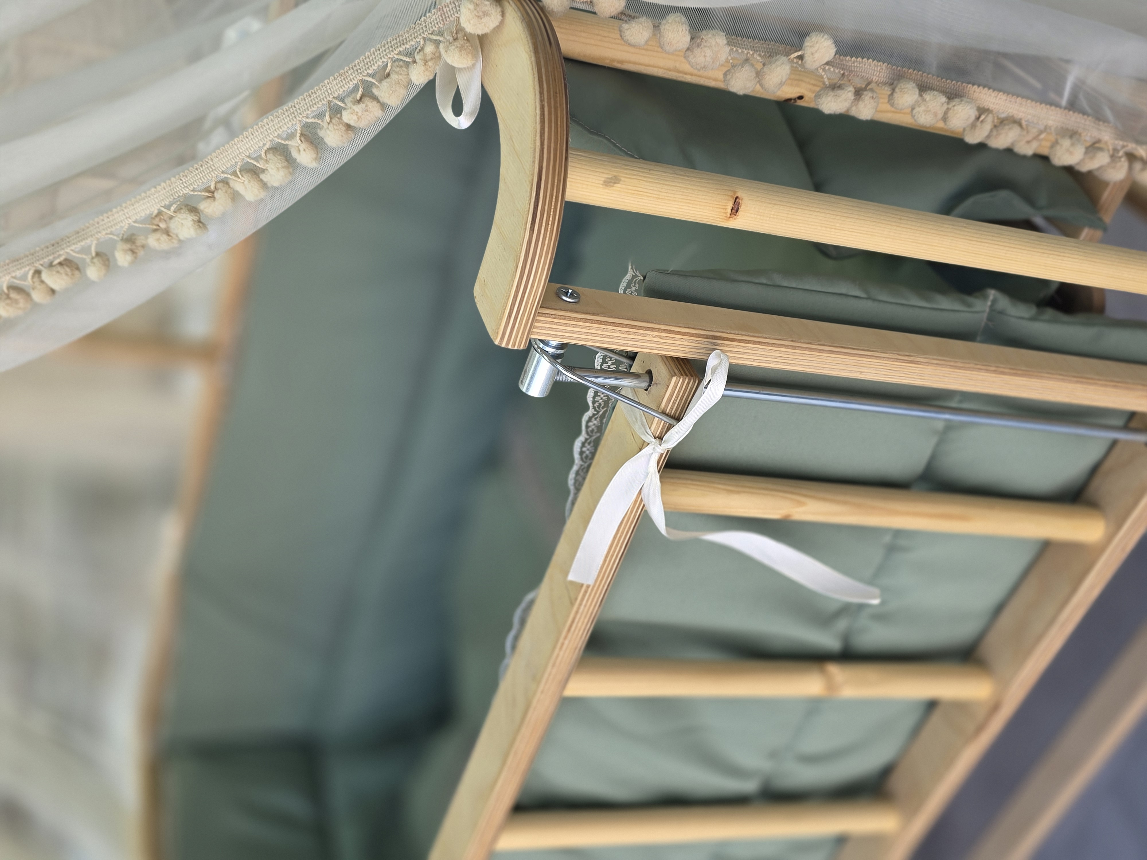 تخت و گهواره‌ کنار مادر چوبی ماتاکیدز مدل رهام (سبز)