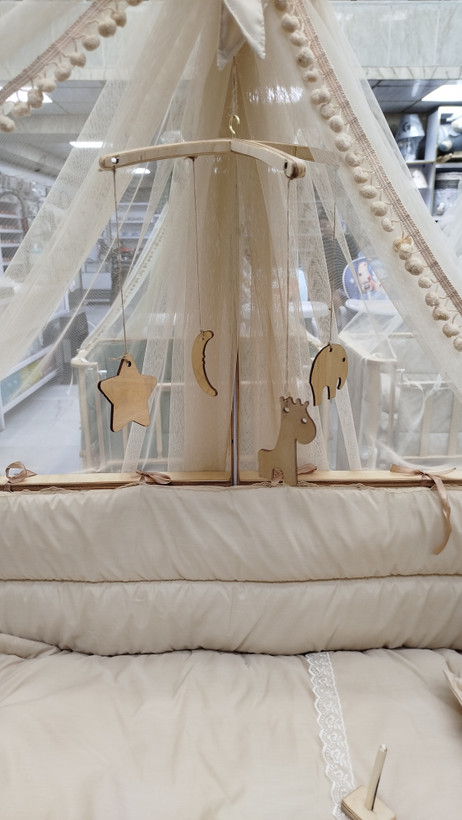 دارای تنظیم ارتفاع بغل باز شو دارد از گهواره کم میشود نور LED دارد آویز چوبی دارد دارای سرویس کامل (لحاف ، گارد ،تشک ،بالشت ) تخت کنار مادر برند آنجل لند مدل لنا در دو رنگ کرم و سفید عرضه میشود دارای ابعاد 70*125 و مناسب برای بدو تولد تا دوسال و نیم