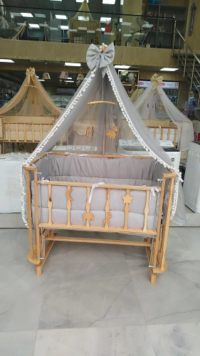 تخت و گهواره چوبی کودک کنار مادر مارک انجللند مدل فرشته رنگ طوسی